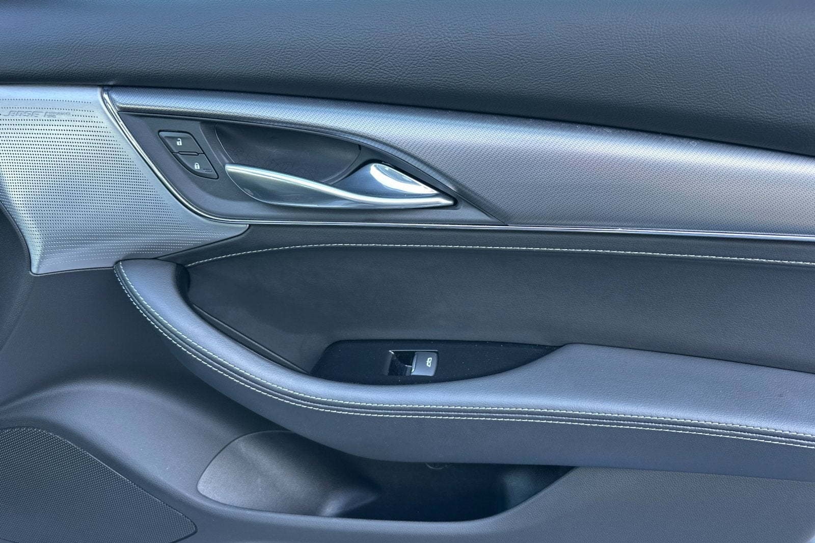 - Stainless steel speaker grilles, with custom hole pattern, created by Cadillac designers complements the perforation pattern in the leather seating